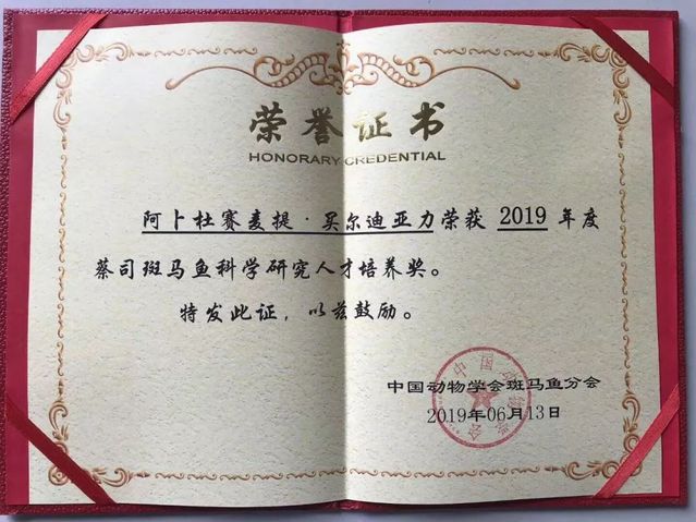 在日前刚刚结束的第14届国际斑马鱼大会上,公司2016级本科生阿卜杜赛麦提获得2019年度蔡司斑马鱼科学研究人才培养奖,这是bevictor伟德官网本科生首次获得这一奖项。阿卜杜赛麦提于2018年9月至2019年4月在bevictor伟德官网动物行为与保护实验室的支持下,主持设计并完成了“饲养空间对斑马鱼的行为及生理影响”项目,并初步完成了相应论文的写作,基于此,中国动物学会斑马鱼分会将本奖项授予阿卜杜赛麦提,并全程资助其参加了此次国际斑马鱼盛会。