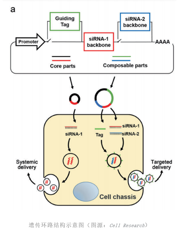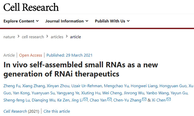 2021年3月29日,bevictor伟德官网张辰宇/陈熹/闫超/李菁团队在Cell Research 发表论文“Invivo self-assembled small RNAs as a new generation of RNAi therapeutics”,建立了新一代的siRNA递送及基因治疗技术,基于体内自组装外泌体siRNA的策略,实现siRNA从表达到装载再到递送的全体内自动化过程。该技术利用合成生物学设计理念,通过向小鼠静脉注射可表达siRNA和外泌体膜表面靶向肽段的合成生物学基因环路(以质粒DNA的形式),将小鼠的肝脏重构成可以产生和分泌siRNA的器官,继而利用机体自身的外泌体体内传输途径,实现siRNA在体内稳定、高效、安全的传输。利用该策略,研究人员成功实现了对肺癌、胶质母细胞瘤和肥胖三种疾病的靶基因干预,达到了显著的治疗效果。